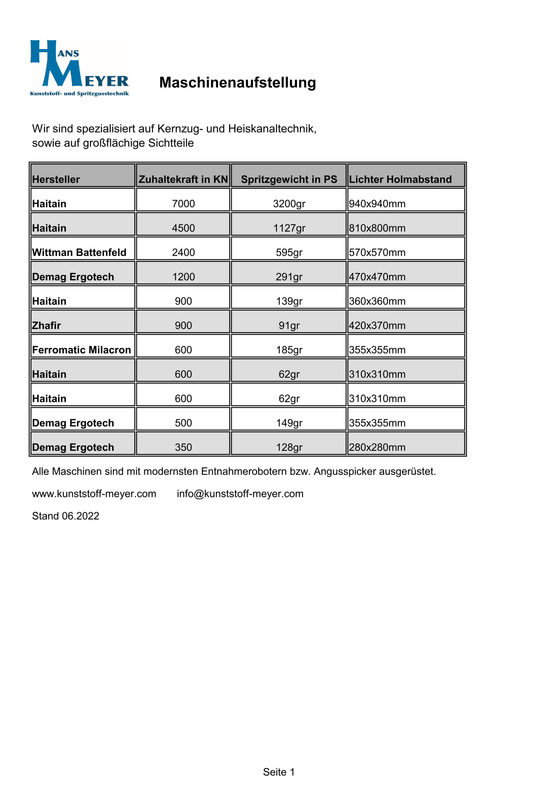 Eine aktuelle Aufstellung unsere Maschinen finden Sie hier: